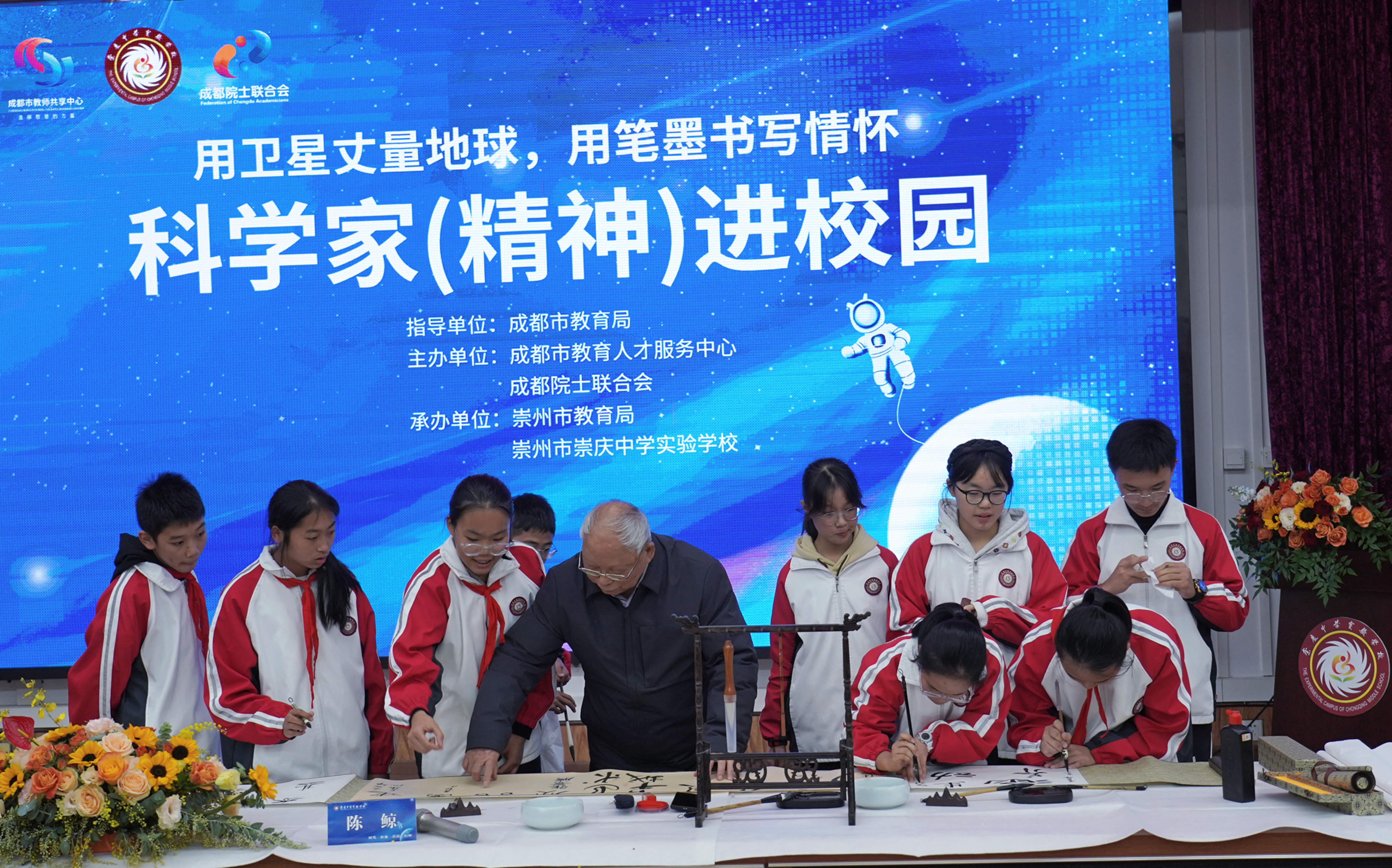 11月5日,“用卫星丈量地球,用笔墨书写情怀”科学家精神进校园活动在崇州市崇庆中学实验学校举行。本次活动在成都市教育局指导下,由成都市教育人才服务中心永之胜、成都院士联合会联合主办,崇州市教育局、崇庆中学实验学校承办。中国工程院院士、我国卫星遥感技术权威专家陈鲸亲临现场,与师生展开深入交流。